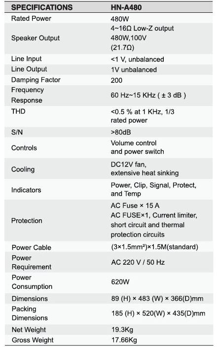 HN-A480 POWER AMPLIFIERS