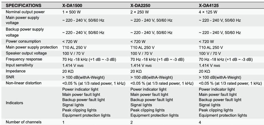 Signal, Dual and Four channel high efficiency Class-D amplifiers for public address